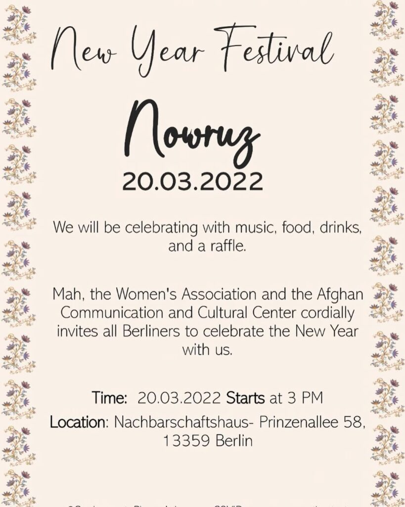 For the New Year’s festival Nowruz, the Afghan Women’s Association MAH and the Afghan Communication and Cultural Center AKKZ invite everyone who is interested to celebrate together.