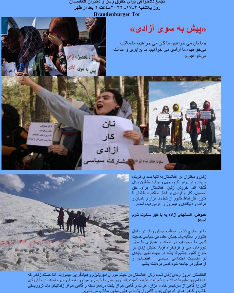 Justice rally for the rights of women and girls in Afghanistan from April 17, 2022